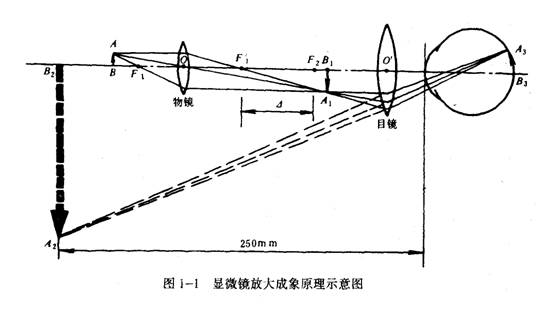 顯微鏡的二次放大原理是先利用一塊焦距較短的鏡頭將微小的物體成一放大的實像,即將物體橫向放大若干倍,然后再利用一塊放大“放大鏡”去觀察這個已被橫向放大了的一次像。