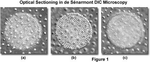 圖像在去Sénarmont DIC顯微鏡的樣品與大型聚光鏡和物鏡的數值孔徑能夠從聚焦圖像平面上創造顯著淺淺的光學部分。無光暈和明亮區域的橫向面分心強度波動的干擾移除焦點,該技術得到了巧妙地從復雜的三維相位標本切片清晰的圖像。此屬性通常用于獲得蜂窩輪廓脆光學切片與來自結構的上方和下方的聚焦平面的干擾Zui小復合組織。