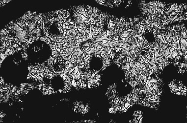 在正交偏光顯微鏡下觀察,非晶體聚合物因為其各向同性,沒有發生雙折射現象,光線被正交的偏振鏡阻礙,視場黑暗。球晶會呈現出特有的黑十字消光現象,黑十字的兩臂分別平行于兩偏振軸的方向。而除了偏振片的振動方向外,其余部分就出現了因折射而產生的光亮。如圖2-7是等規聚丙烯的球晶照片。